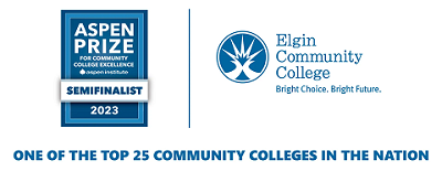 [Elgin Community College was named one of the top 25 community colleges in the nation. Elgin Community College received the Aspen Prize for Community College Excellence by the Aspen Institute and is a Semifinalist for 2023. Elgin Community College logo of Bright Choice. Bright Future.]