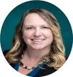 [Smiling Caucasian woman with light blond hair and a teal background.]