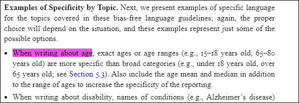 > starts with “When writing about age, exact ages or age ranges…”. In the